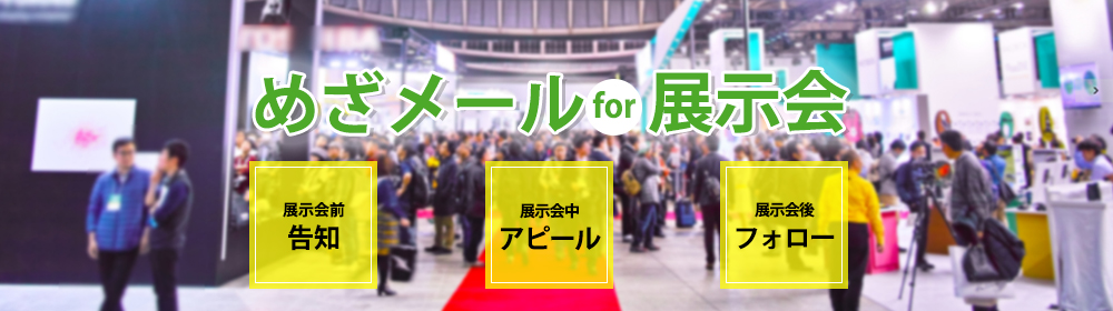 また、せっかく興味を持ってもらったのにフォローができなければ無意味。 「めざメールfor展示会」は展示会前告知と展示会後のフォローをメールを使って実現をしていくツールです。